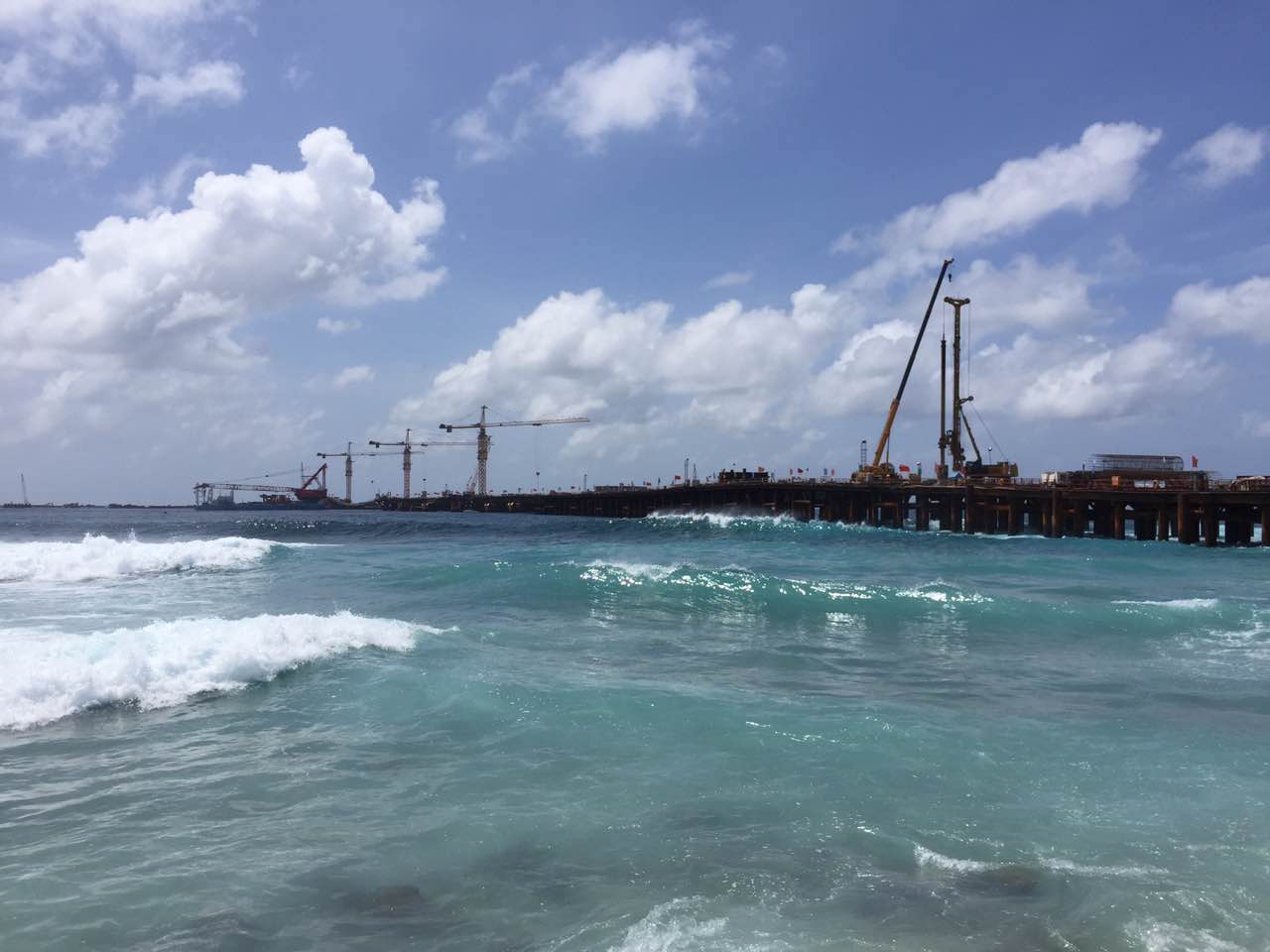 中馬友誼大橋位于馬爾代夫北馬累環(huán)礁,連接環(huán)礁上馬累島、機場島和胡魯馬累島三個島嶼,是馬爾代夫最重要的島嶼連接線工程。大橋主跨180米,主橋長760米,包括引橋、引堤全長2.1公里。 馬爾代夫中馬友誼大橋是2014年習近平主席訪馬期間雙方領導人共同商定的大型工程,是踐行“一帶一路”倡議的重點工程,也是我國援外工程改革的第一個試點項目和第一個援外資金與國家優(yōu)惠貸款組合項目,對促進中馬兩國關系以及促進馬方社會經濟發(fā)展具有重大意義。